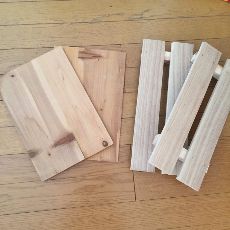 材料は、すのこ1/3、ダイソー木材、セリア角棒です。
