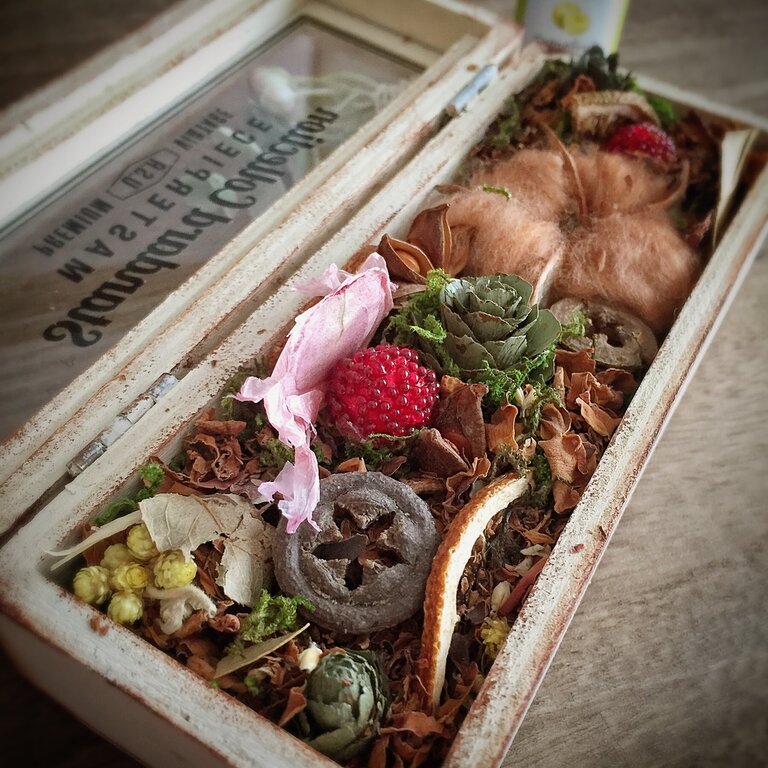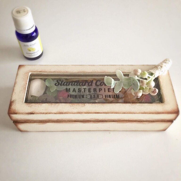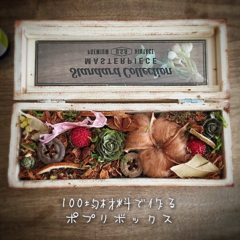 今回は、100均の木製コレクションケースやナチュラルパーツなどを使って、簡単ポプリボックスを作りました