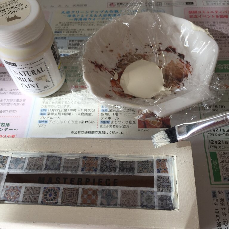 マスキング後、ダイソーのナチュラルミルクペイントのナチュラルベージュでペイントしました。