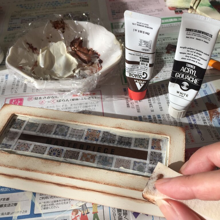 わたしはアンティークな感じが好きなので、白くペイントした後に、使い古したようなアンティーク感が出るよう更にペイントしました。