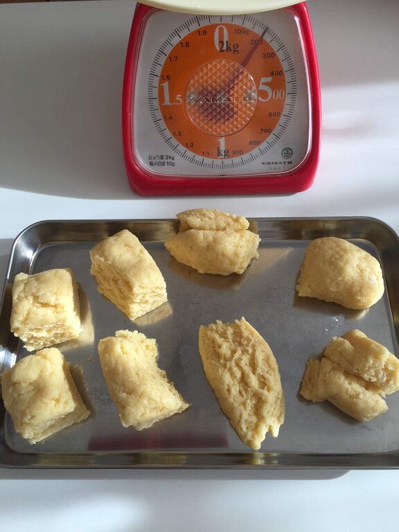 たしか40gずつに量ったはずなのに、大きさがバラバラになったのは、これ如何に…。