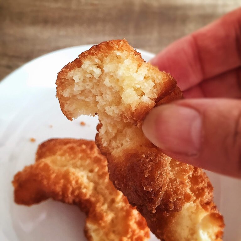 YouTubeを参考にさせて頂いて初めて作りましたが、ミスタードーナッツのオールドファッションと比べても遜色ない美味しさでしたよ~