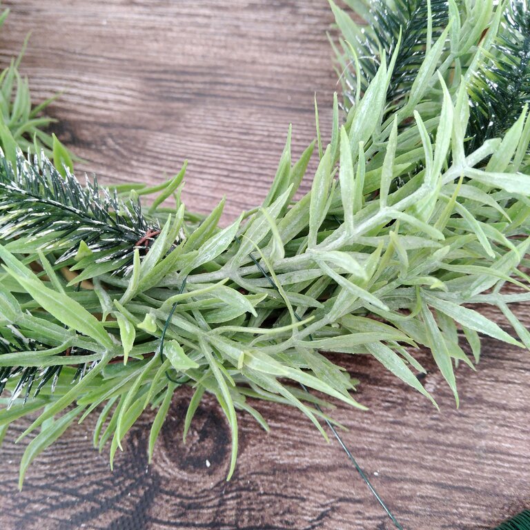 リース土台の真下辺りは凹みやすくなるので葉を足しました。