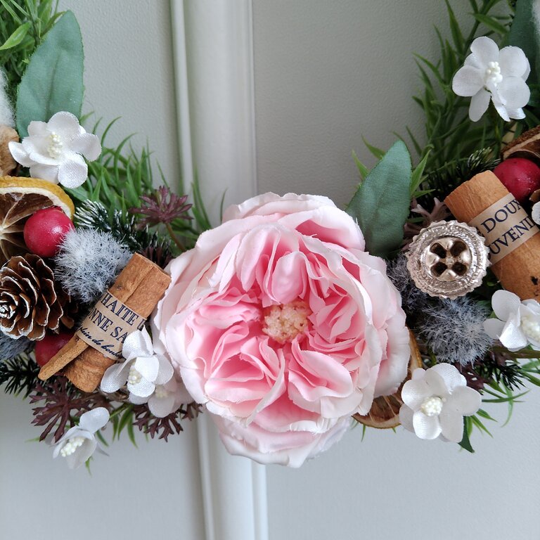 ダイソーやワッツの造花をメインに、クリスマスリースを作ってみました