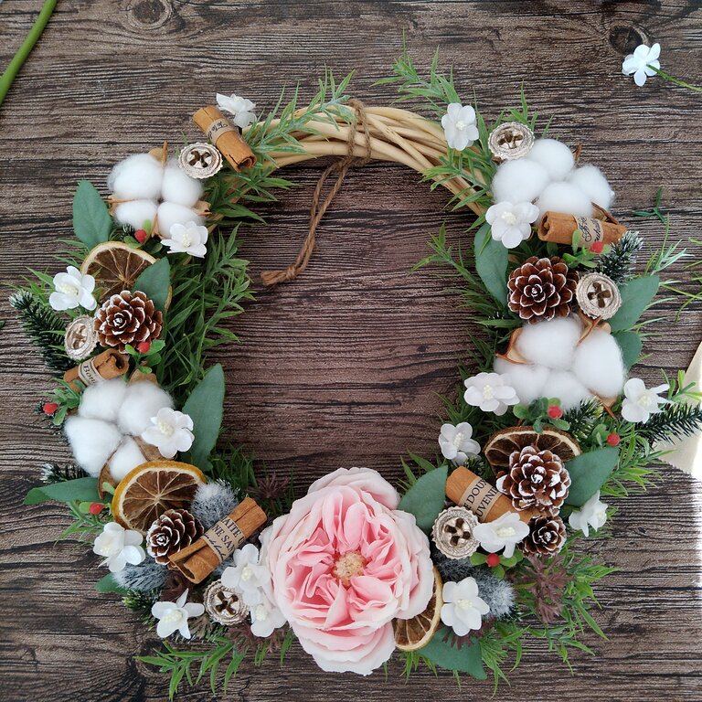 みなさんも、お好きな花材で個性あふれるリースを作ってみて下さいね