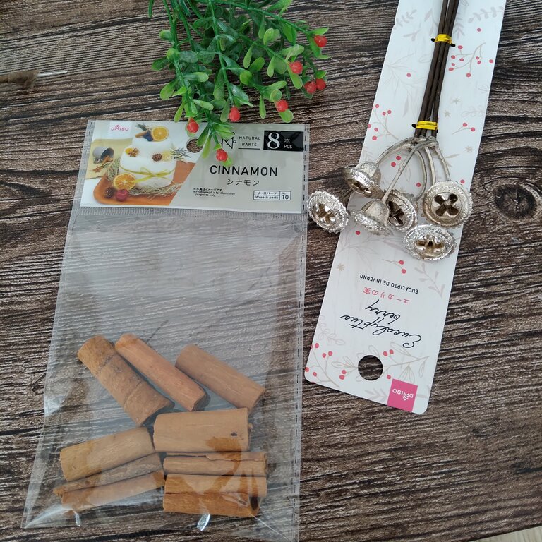 また、ダイソーのシナモンや、ナチュラルキッチンやワッツの赤い実物も途中で足しました。